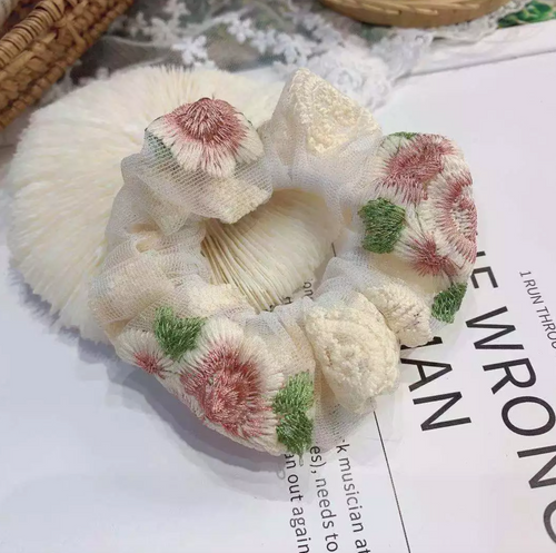 The Mia Embroidered Flower Organza Scrunchie