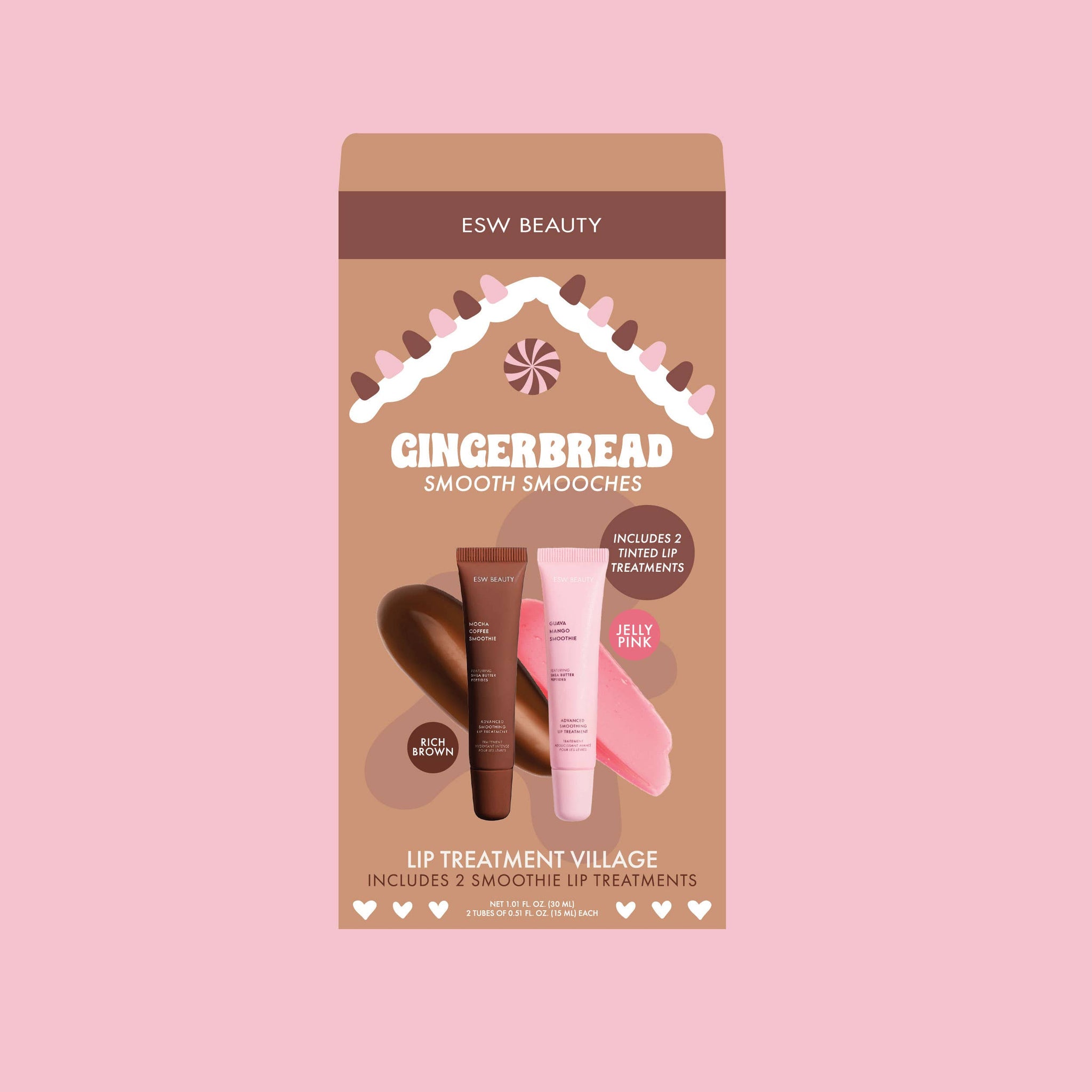 Bring the magic of the holidays to your lips with our Gingerbread Lip Treatment Village – a sweet and cozy duo made for festive pampering. This seasonal set features two deliciously tinted lip treatments: one with a soft pink glow that smooths and plumps, and one with a rich espresso brown tint that wraps your lips in warm, mocha-scented moisture.