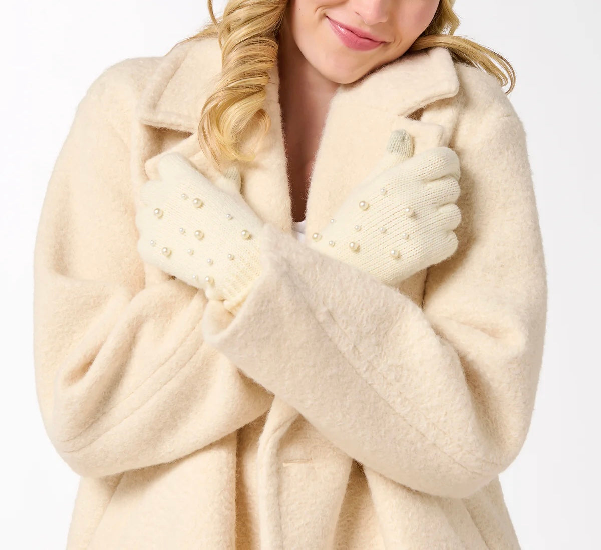 Add a little pearl power to your cold-weather look with the Perla Touchscreen Gloves. These cozy knit gloves are adorned with delicate faux pearl embellishments for a hint of glam that doesn’t skimp on function. Designed with touchscreen-compatible fingertips, you can text, scroll, and snap pics without ever taking them off. Perfect for keeping your hands toasty and your style on point.