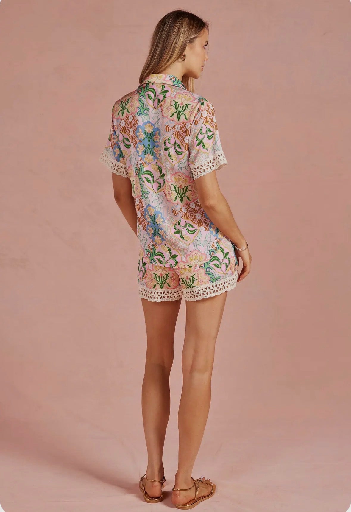Garden Party Crochet Contrast Trim Satin Top **PREORDER**